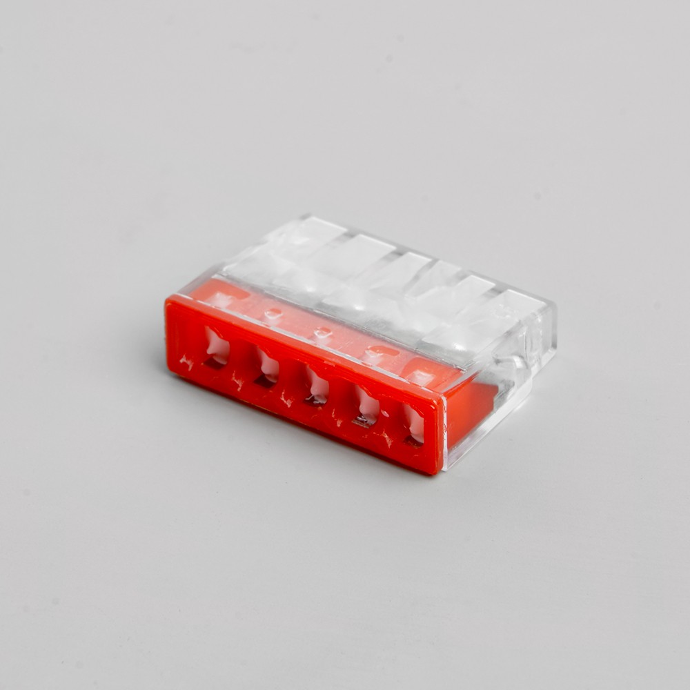 Клемма пружинная компактная STEKKER LD2273-245 , 5-проводная 0,5-2,5 мм2, 450В, 24A, с пастой, материал изделия поликарбонат, латунь, сталь. Тип провода одножильный, материал провода медь, температура окружающей среды -20...+40°C