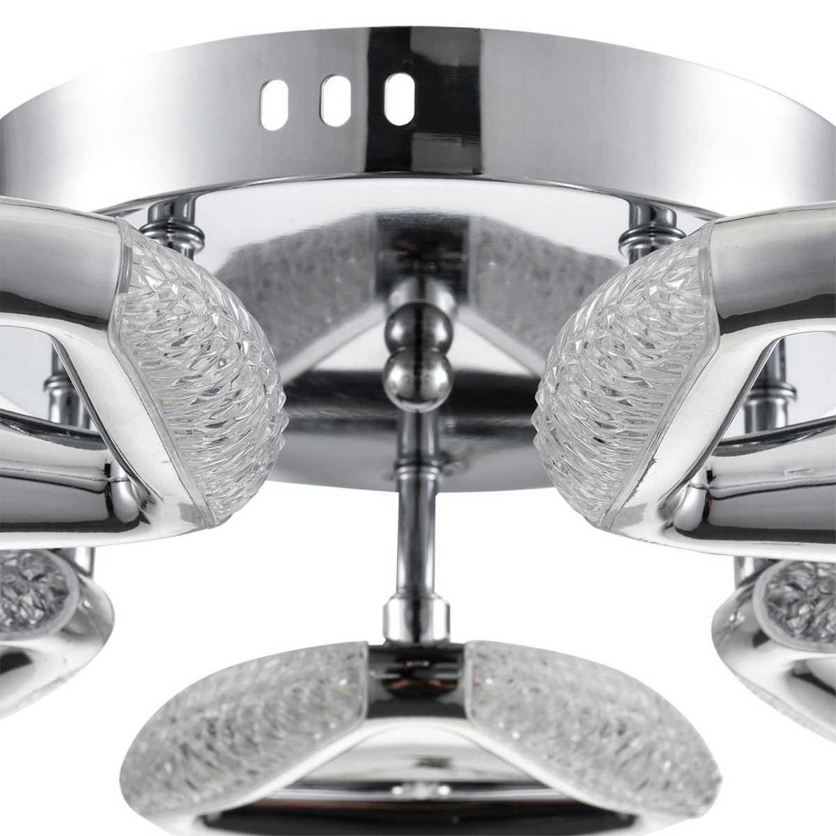 Лаконичная и в тоже время роскошная серия RUANA дополнит интерьер в стиле минимализм или хайтек. Данная серия люстр облегчена за счет пластиковых хромированных рожков. Треугольная форма плафонов очень элегантно собирается в круг. Рассеиватель декорирован во внутренней части акриловой крошкой, что во включенном состоянии добавляет еще больше блеска.
