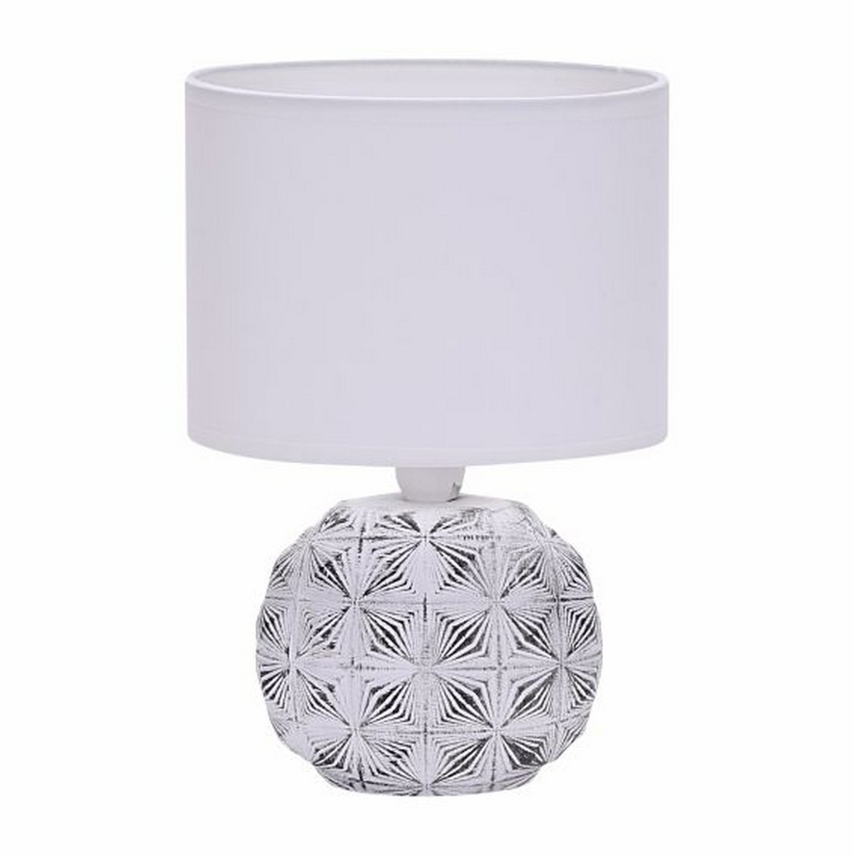 Срок гарантии, (мес): 12 Керамическое основание; Тканевый плафон; Сетевой провод с выключателем; Цоколь Е14. Может использоваться в качестве дополнительного источника света дома (в спальне, гостиной, детской комнате и зоне отдыха) или в офисе.  Стильный и современный дизайн идеально дополнит любой интерьер; Тканевый плафон предотвращает блики и создает мягкий рассеянный свет, способствующий спокойному отдыху; Керамическое основание светильника, выполненное в оригинальном стиле, придаёт ему прочность и устойчивость; Плафон светильника не нагревается;  Компактные габариты позволяют удобно разместить светильник на небольшой поверхности; Светильник изготовлен из негорючих материалов, прост в установке и эксплуатации.