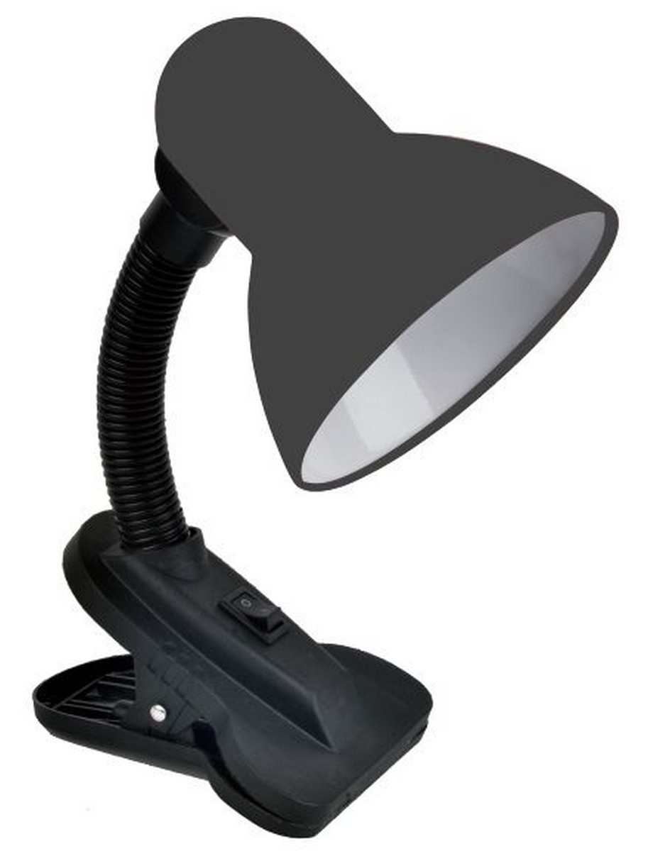 Срок гарантии, (мес): 12 Корпус: металл/пластик. Гибкая ножка-держатель. Кнопка включения/выключения встроена в основание светильника. Провод 1м. Светильник наиболее эффективно работает со светодиодными лампами мощностью до 20Вт, с цоколем Е27. Светильник настольный предназначен для создания комфортных условий освещения рабочей поверхности при использовании дома, в офисах, в учебных заведениях. Кнопка для комфортного включения/выключения светильника встроена в корпус основания; Конструкция настольного светильника позволяет плавно регулировать наклон и поворот плафона; Прочный и легкий корпус идеально подойдет для ежедневного использования; Компактные размеры позволяют удобно разместить светильник  даже на небольшом рабочем столе; Светильник изготовлен из негорючих и нетоксичных материалов, прост в установке и эксплуатации
