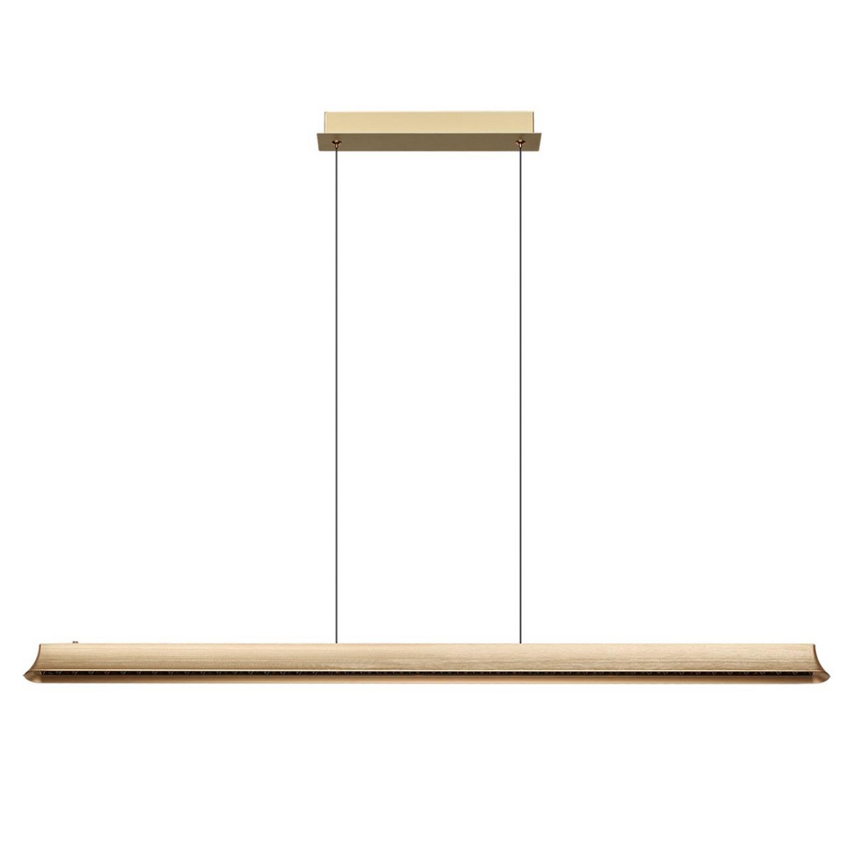Светодиодные подвесы Nova - лаконичное решение для ценителей простых форм и ярких акцентов в интерьере. Арматура цвета брашированное золото отлично впишется как в светлый интерьер, так и в более темный, например синий или зеленый. Большой подвес имеет дистанционное управление и регулируемые яркость и цвет.