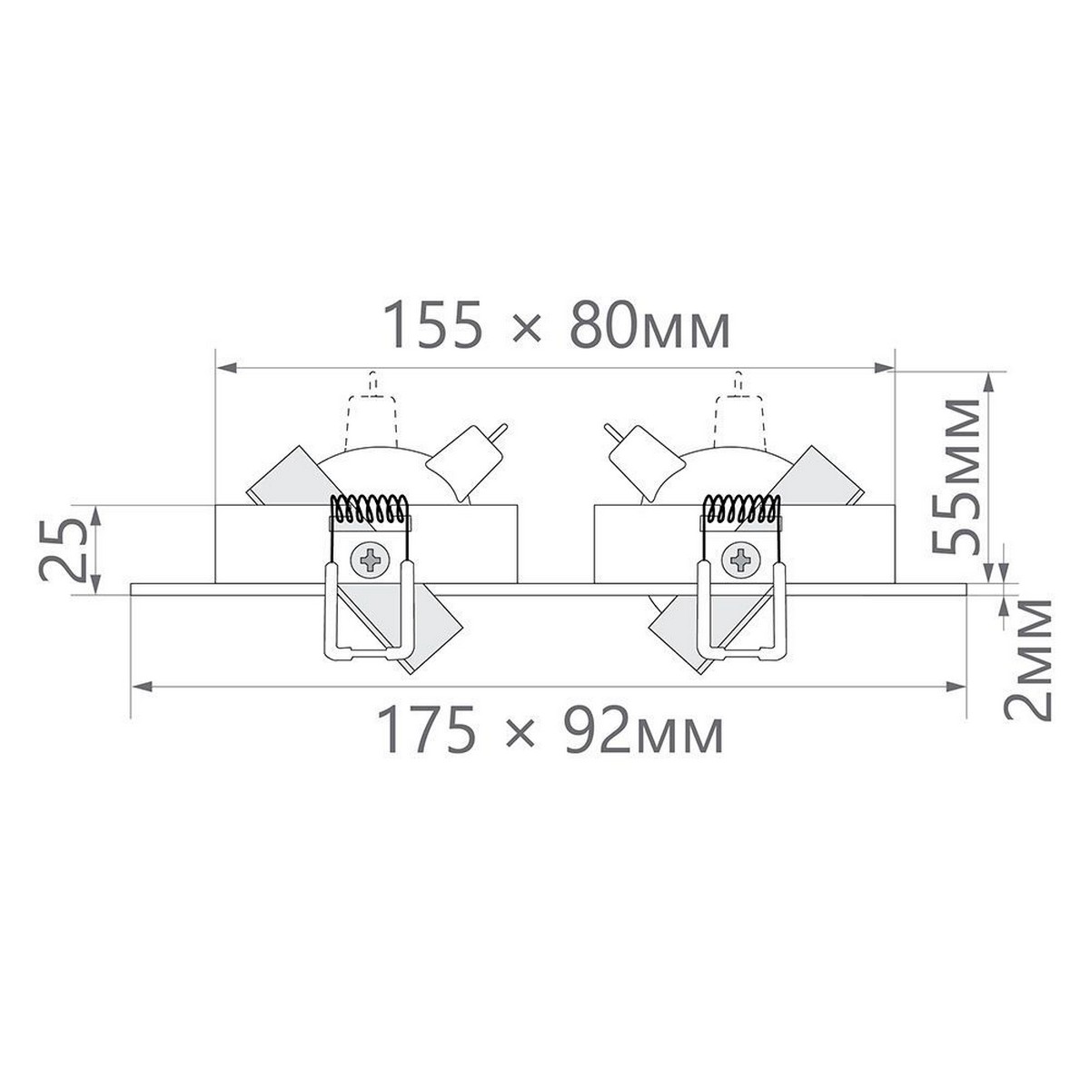Светильник потолочный встраиваемый (ИВО) FERON DL2802, под лампу MR16 G5.3, хром, прямоугольник, 175*92*25 мм, монтажный диаметр 155мм, корпус металл, поворотный