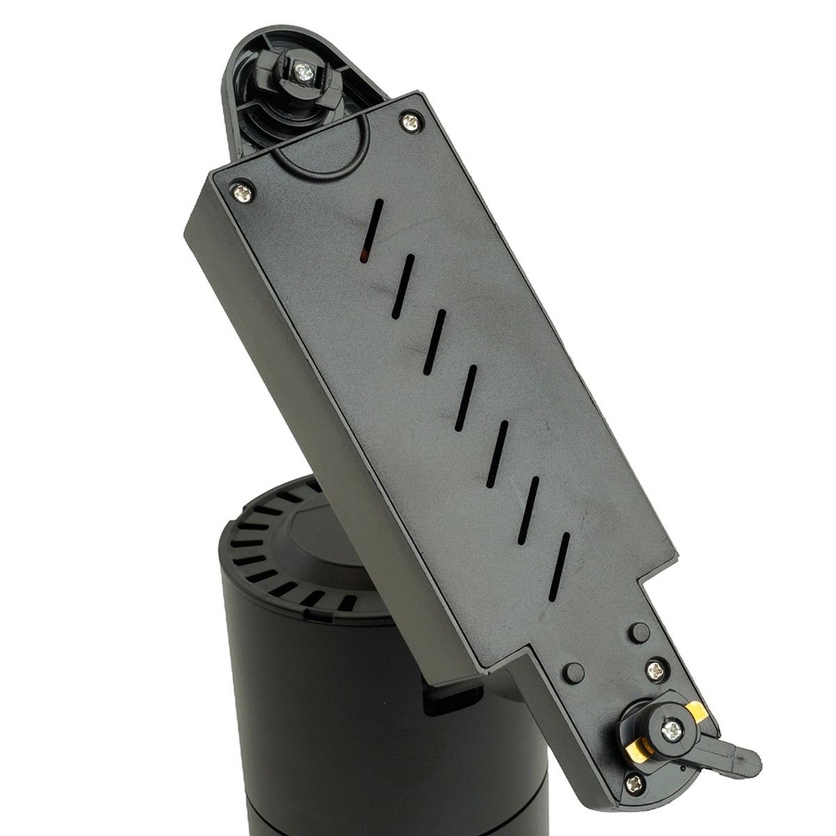 Светильник AL103 характеризуется высокой степенью регулируемости: его можно настраивать под разные углы освещения до 35 градусов, что позволяет точечно осветить нужные зоны. Корпус устройства выполнен в черном цвете, что придает ему универсальность и стиль, легко вписываясь в любой интерьер — от современного до классического.