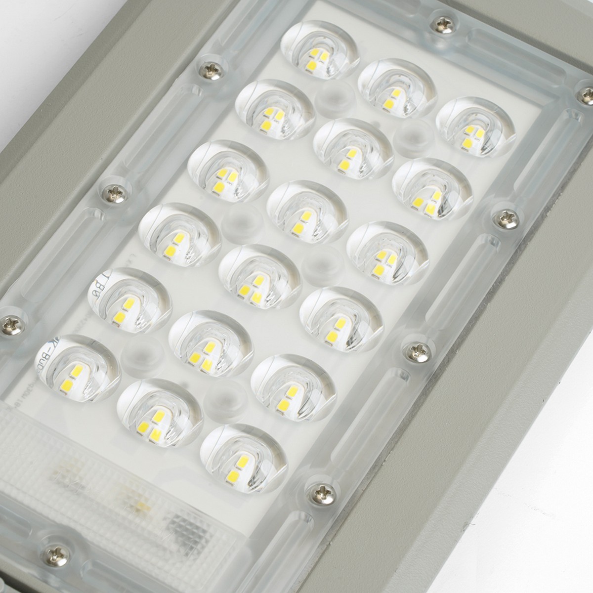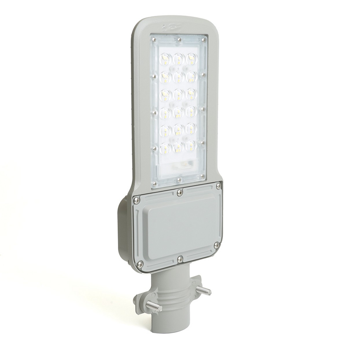 Революционный светодиодный консольный уличный светильник Feron SP3040 обеспечивает высокую эффективность освещения благодаря своей мощности в 30 Вт и свечению в диапазоне дневного белого света (5000K). Светильник распространяет яркий и равномерный свет благодаря углу рассеивания 120°, что делает его идеальным для освещения открытых площадок и установки на столбы. Эта модель от производителя Feron обладает защитой от пыли и влаги по классу IP65, что обеспечивает его долговечность и надёжность в сложных уличных условиях. Прямоугольный корпус светильника изготовлен из прочного алюминия и окрашен в универсальный серый цвет, что делает его как функциональным, так и атрактивным элементом уличного декора. Благодаря широкому диапазону рабочих температур от -60°C до +45°C, светильник SP3040 подходит для использования в различных климатических зонах.