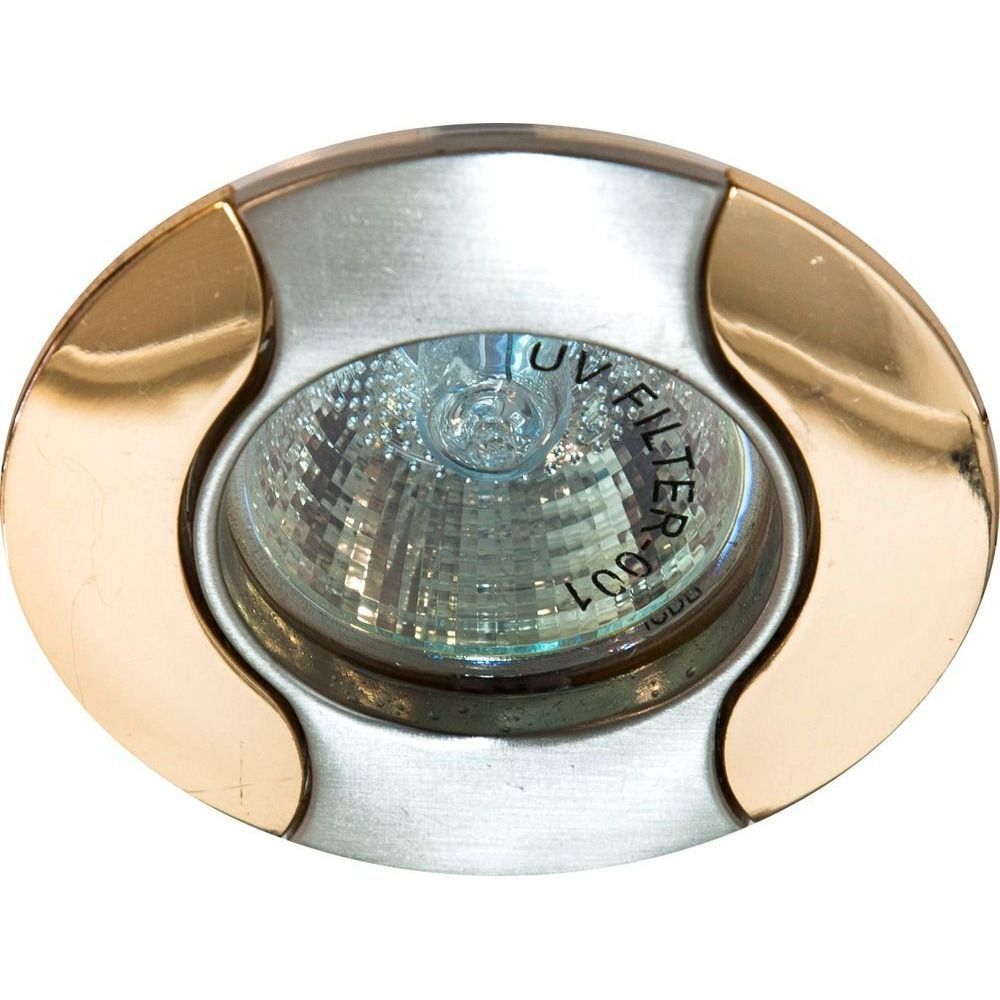 Светильник потолочный встраиваемый (ИВО) FERON 301T, под лампу MR16 G5.3, золото-хром, круг, 80*80*20 мм, монтажн.отв. 70мм,  поворотный