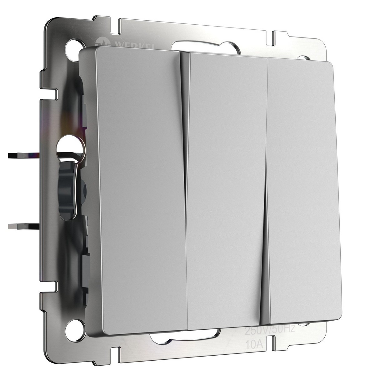 Радующий глаз серебряный матовый цвет придаёт интерьеру современный вид, а все токоведущие части имеют защиту от случайного контакта. Удобные присоединения проводов обеспечивают быстрое и надежное подключение без необходимости в обслуживании. К тому же, улучшенная эргономика снижает вероятность искрения при использовании светодиодов. Клавиши имеют короткий и тихий ход, что делает их эксплуатацию комфортной. Выбор выключателя Werkel – это гарантированное качество и стиль в каждой детали.