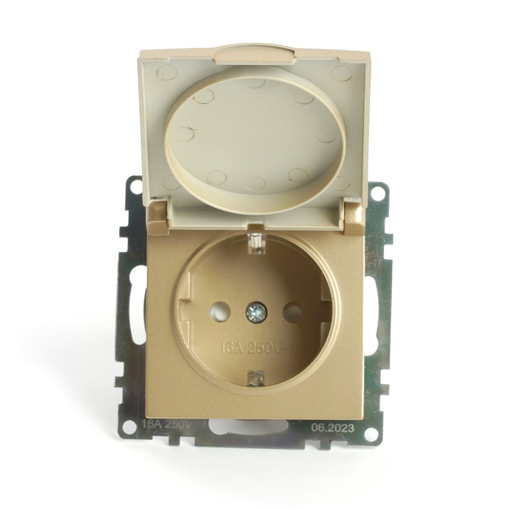 Изготовленная из прочного поликарбоната и латуни с элегантной золотой отделкой, эта модель не только функциональна, но и стильно вписывается в любой дизайн. Номинальное напряжение 250 В и ток 3A обеспечивают надежную работу, а диапазон рабочих температур 0..+35°C гарантирует стабильность в различных условиях. Степень защиты IP20 подходит для использования в помещениях.