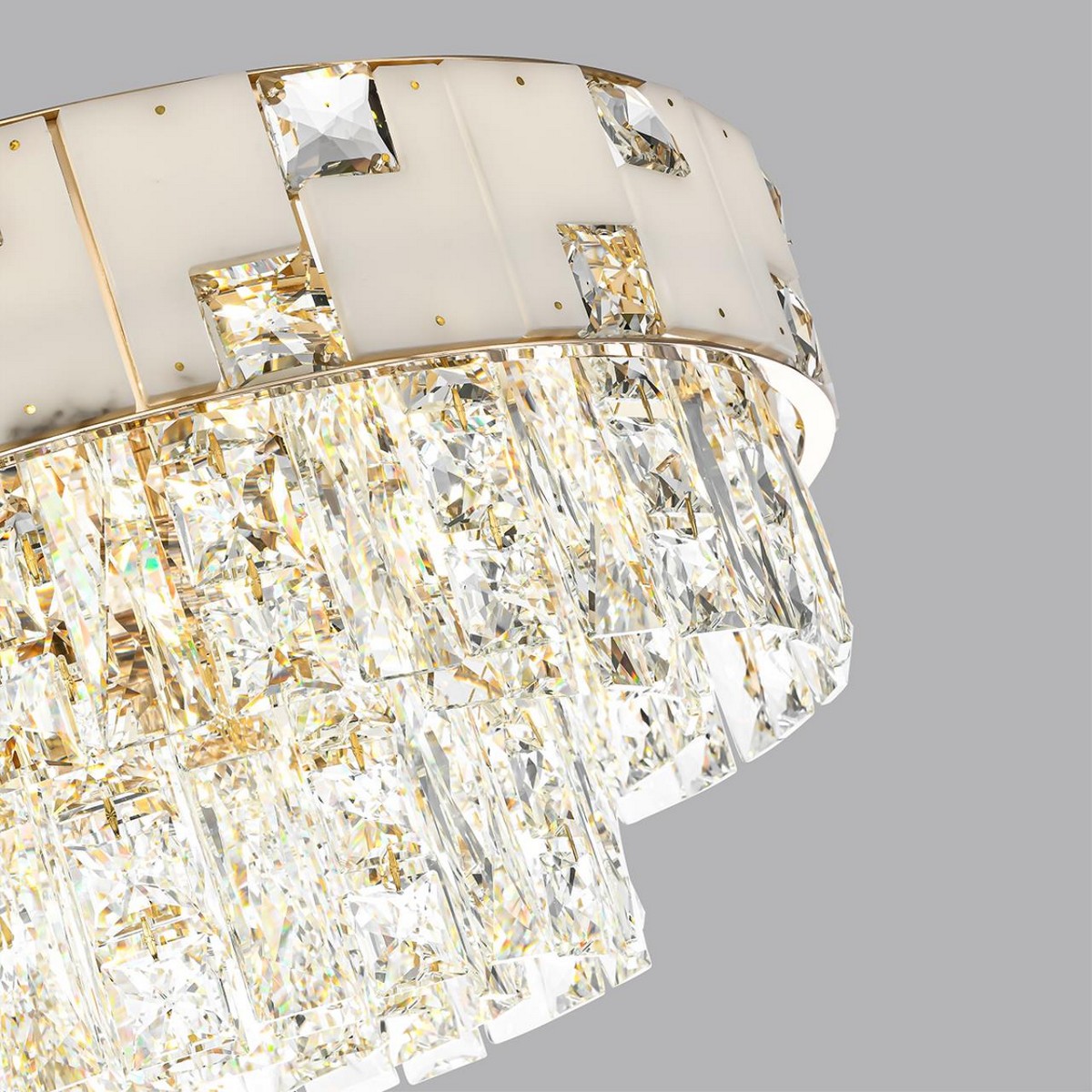 Дизайн с декоративным ободом и изящными хрустальными подвесками делает люстру поистине эффектной и отлично подходит для освещения больших помещений. Благодаря своей универсальности и стильному исполнению, этот светильник уместно вписывается в различные интерьеры, добавляя им торжественности и роскоши.