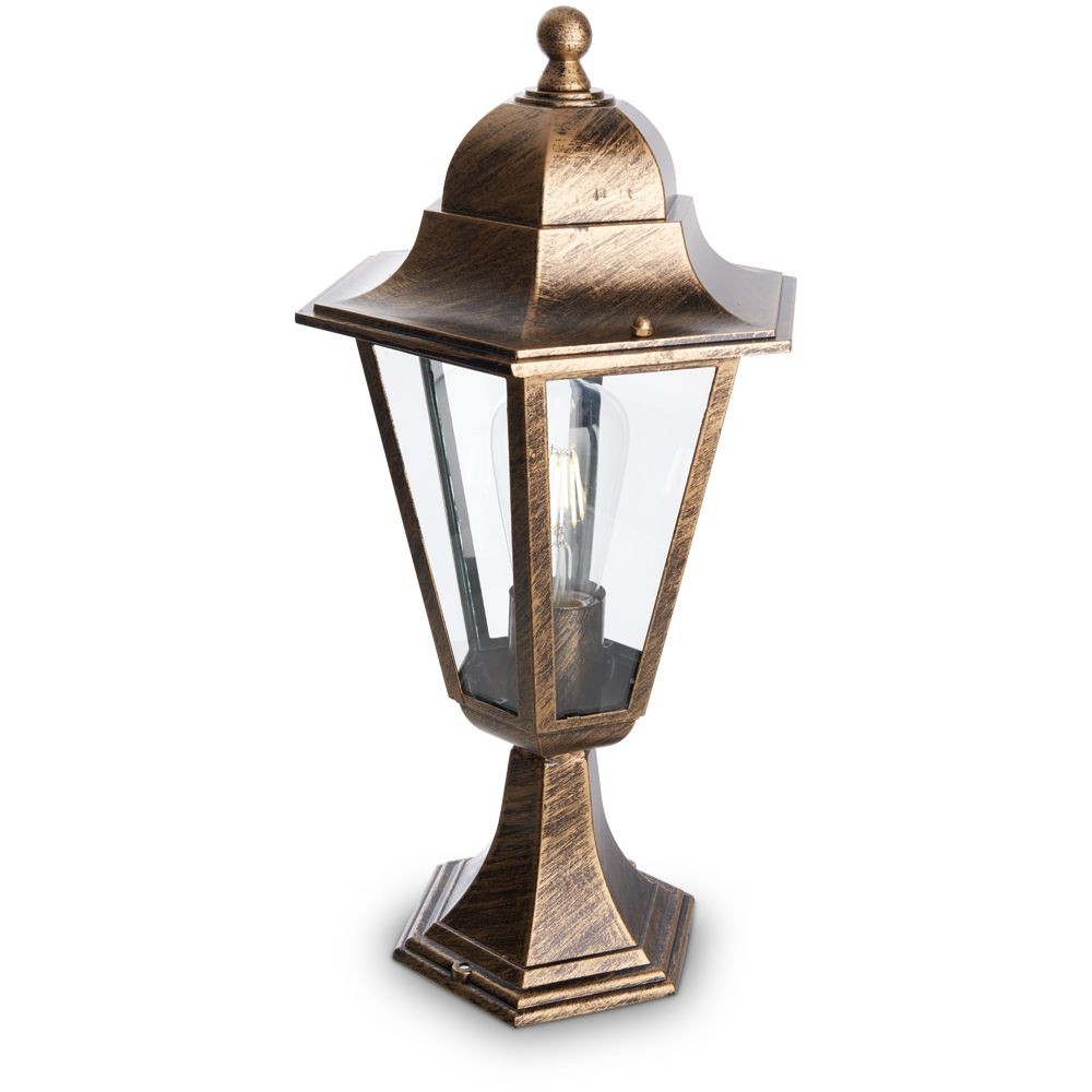 Срок гарантии, (мес): 24 •корпус изготовлен из алюминиевого сплава, устойчивого к коррозии; •рассеиватель - прозрачное закаленное стекло. для декоративного и функционального освещения фасадов загородных домов, приусадебных участков, садово-парковых территорий, бульваров, тротуаров и т.д. •классический элегантный дизайн светильников легко впишется в стиль большинства садово-парковых зон; •помогут создать уникальное, безопасное и комфортное ландшафтное освещение территории; •защита от пыли и влаги; •легкая сборка и монтаж, крепежный набор в комплекте; •простая замена лампы вместо замены светильника; •идеальная совместимость со светодиодными лампами LEEK.