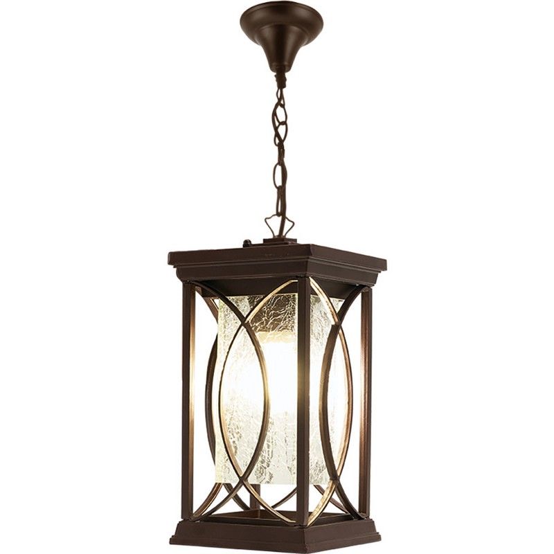 Светильник для уличного освещения. Сделан из металла и стекла, не подвержен коррозии, можно использовать на любых открытых площадках, дачном участке, доме, и других местах. Садово-парковые светильники серии Лион от Feron в цвете Коричневый с типом цоколя E27 идеально подойдут для освещения Вашего загородного участка, дачи или дома. Светильник садово-парковый, серии «Лион», (НСУ) FERON PL652 60W, E27, 230V, IP44, цвет коричневый, 4-х гранник, на цепочке, 125*125*720мм