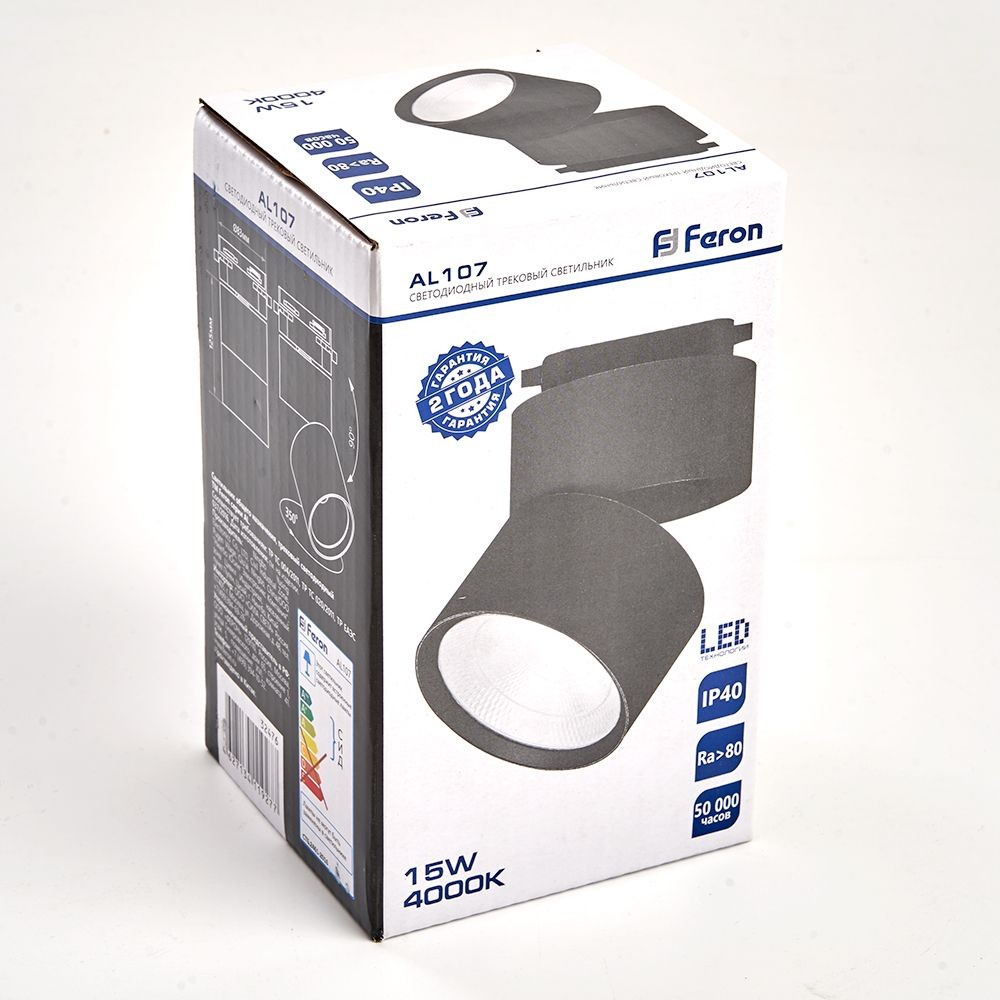 Светодиодный светильник Feron AL107 трековый на шинопровод 15W 4000K черный 32476 по цене 1 382 руб. с фотографией и техническими характеристиками. Для покупки товара нажмите кнопку "Купить" и перейдите в корзину или позвоните по телефону 8 (495) 585 32 60 или 8 (800) 222 23 53.