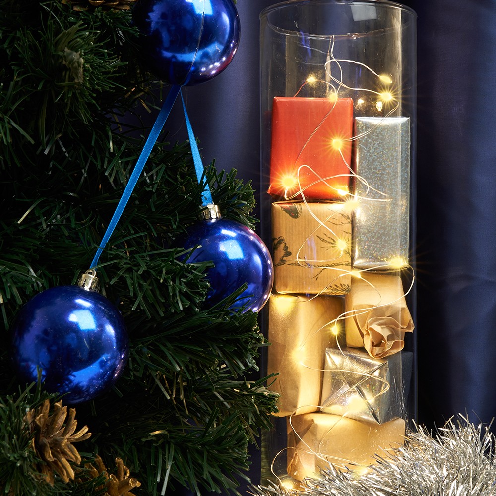 Гирлянда линейная от батареек FERON CL570, 20LED, 2700К (теплый белый), статичная (постоянного свечения), 2м+0,5м прозрачный шнур, расстояние между светодиодами 10см, IP20, 1,2W, на батарейках 2*AA, батарейки отсутствуют в комплекте, последовательное подключение - НЕТ